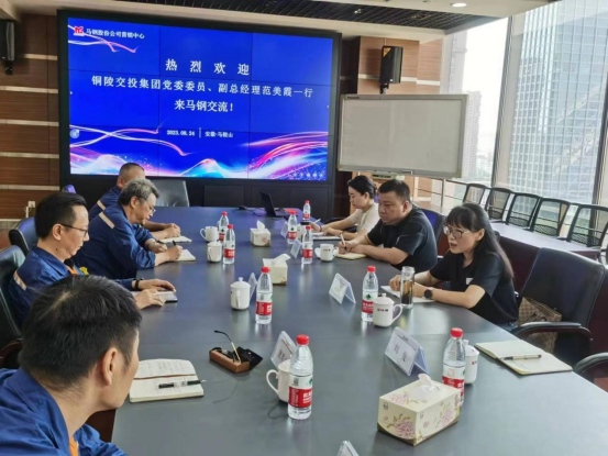 8月24日下午,集團(tuán)公司黨委委員、副總經(jīng)理范美霞受馬鞍山鋼鐵股份有限公司營銷中心總經(jīng)理趙勇邀請,前往馬鞍山鋼鐵股份有限公司開展交流學(xué)習(xí)。通馳商貿(mào)公司副總經(jīng)理及相關(guān)部門負(fù)責(zé)人參加會(huì)議。