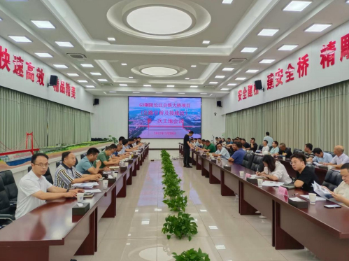7月29日上午,G3銅陵長江公鐵大橋項目(公路引橋及接線段)首次工地例會在項目部會議室召開。集團公司黨委委員、副總經理湯世才出席會議,集團公司工程管理部、合約管理部、銅陵長江公鐵大橋投資有限公司及G3公鐵橋各參建單位相關負責人參會。