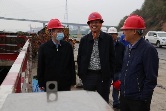 檢查組一行聽取了建設單位對項目水行政許可落實情況的匯報,詳細了解項目進展、施工組織安排、防洪影響補救措施、施工期防汛應急預案投資情況,并前往G3公鐵橋南岸4#主墩,實地踏勘了施工現場。